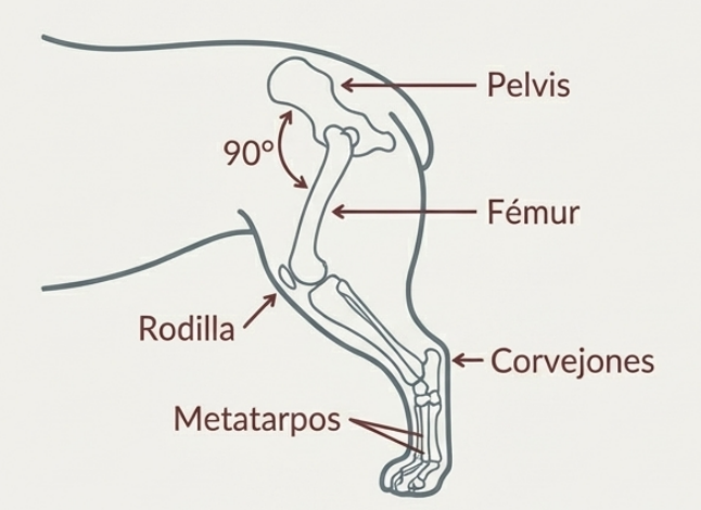 Ancho: El ancho de los miembros posteriores es