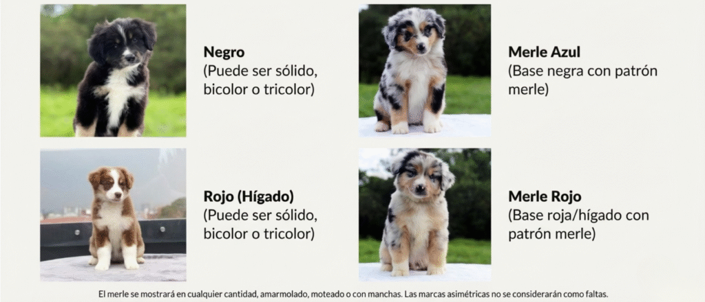 negros/merles azules; hígado para rojos/merles rojos).