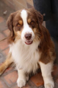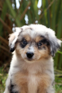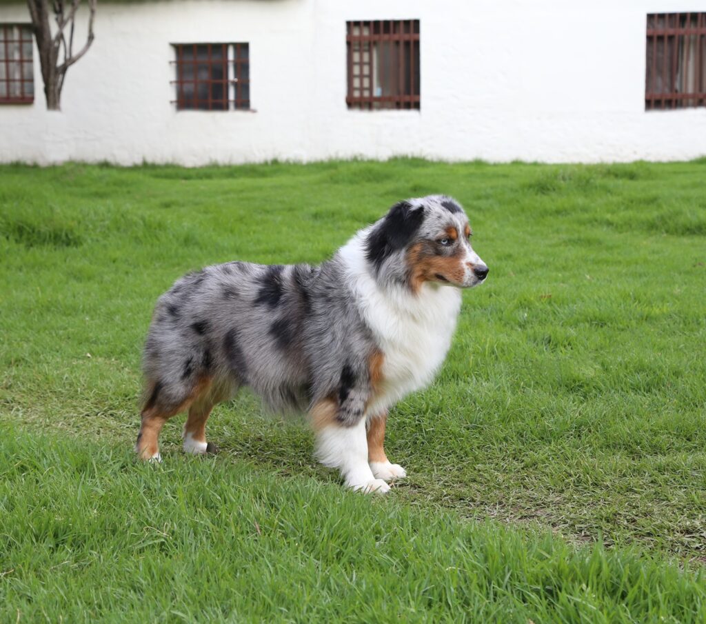 Fátima es una blue merle divina — de esas que parecen pintadas a mano, como si alguien hubiera decidido que la genética también podía ser arte. Su pelaje es espectáculo, pero su energía lo es aún más.
